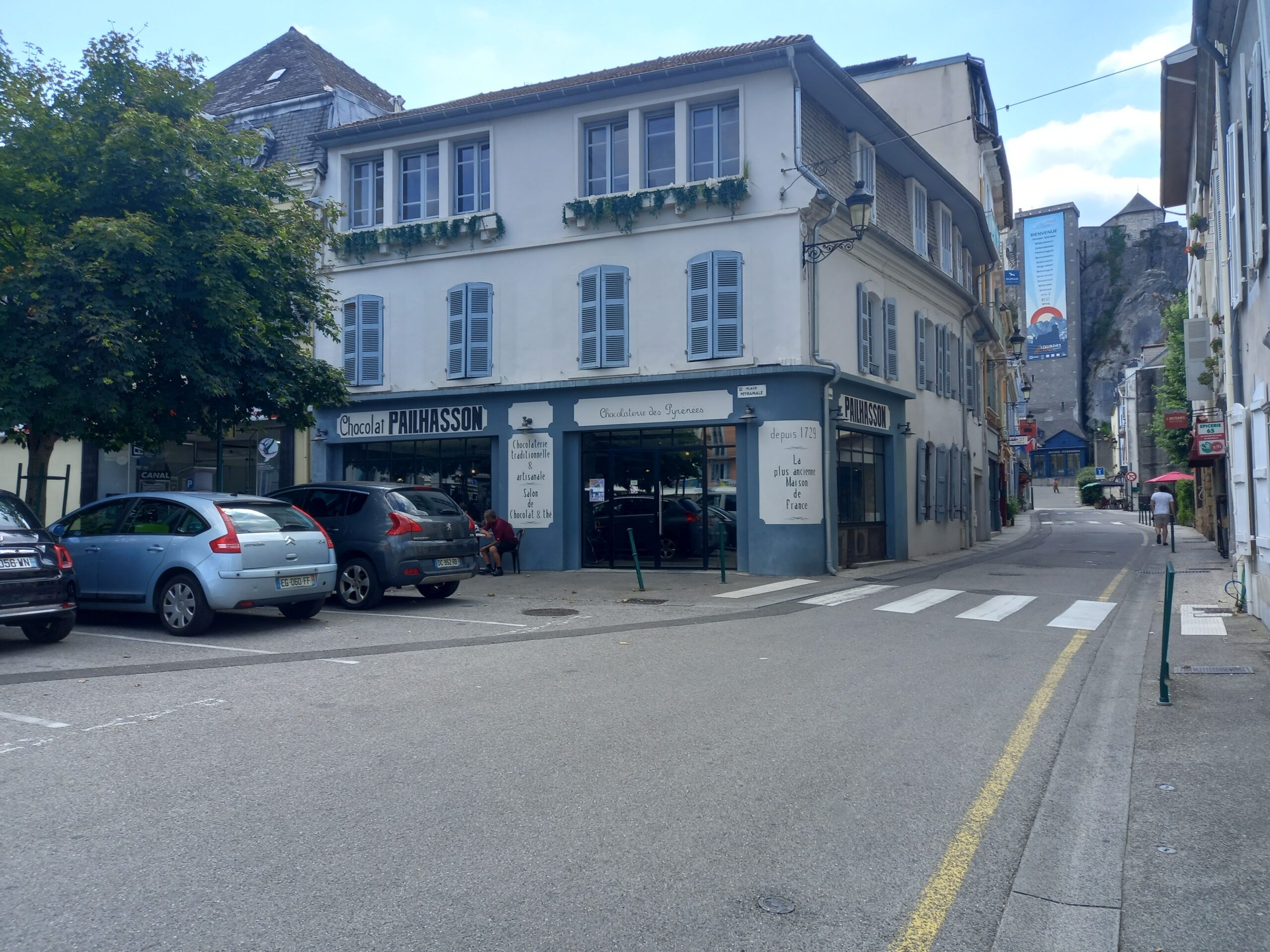 Na de middag wandel ik nog even naar het stadscentrum waar blijkbaar de oudste chocolaterie van Frankrijk te vinden is: Maison Pailhasson genaamd. Dit winkeltje waar ook thee kan worden gedronken, is enkel ’s namiddags open. Dat ontdekte ik toen ik enkele dagen geleden noodgedwongen in het stadscentrum moest blijven omdat Macron op bezoek kwam. Volgens haar website was deze chocolaterie de chocoladeleverancier van paus Leo XIII. Dat wekte mijn nieuwsgierigheid. Er is een rijk aanbod van chocoladetabletten, snoepjes en pralines. Ik koop er enkele voor de thuisblijvers in België.